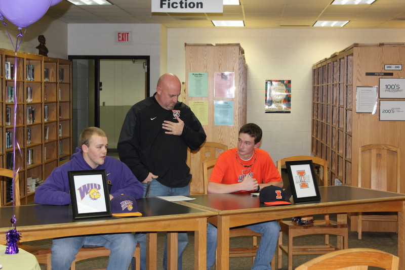 Matthew James,  Adam McGinnis and Alex Jefferson recently signed their letters of intent to play baseball at Division 1 programs next year.  Matthew will play at University of Illinois, Adam will play at Western Illinois University and Alex will play at Missouri State.  A very nice signing ceremony, a baseball team tradition, was held in the library at Normal West in front of friends and family.